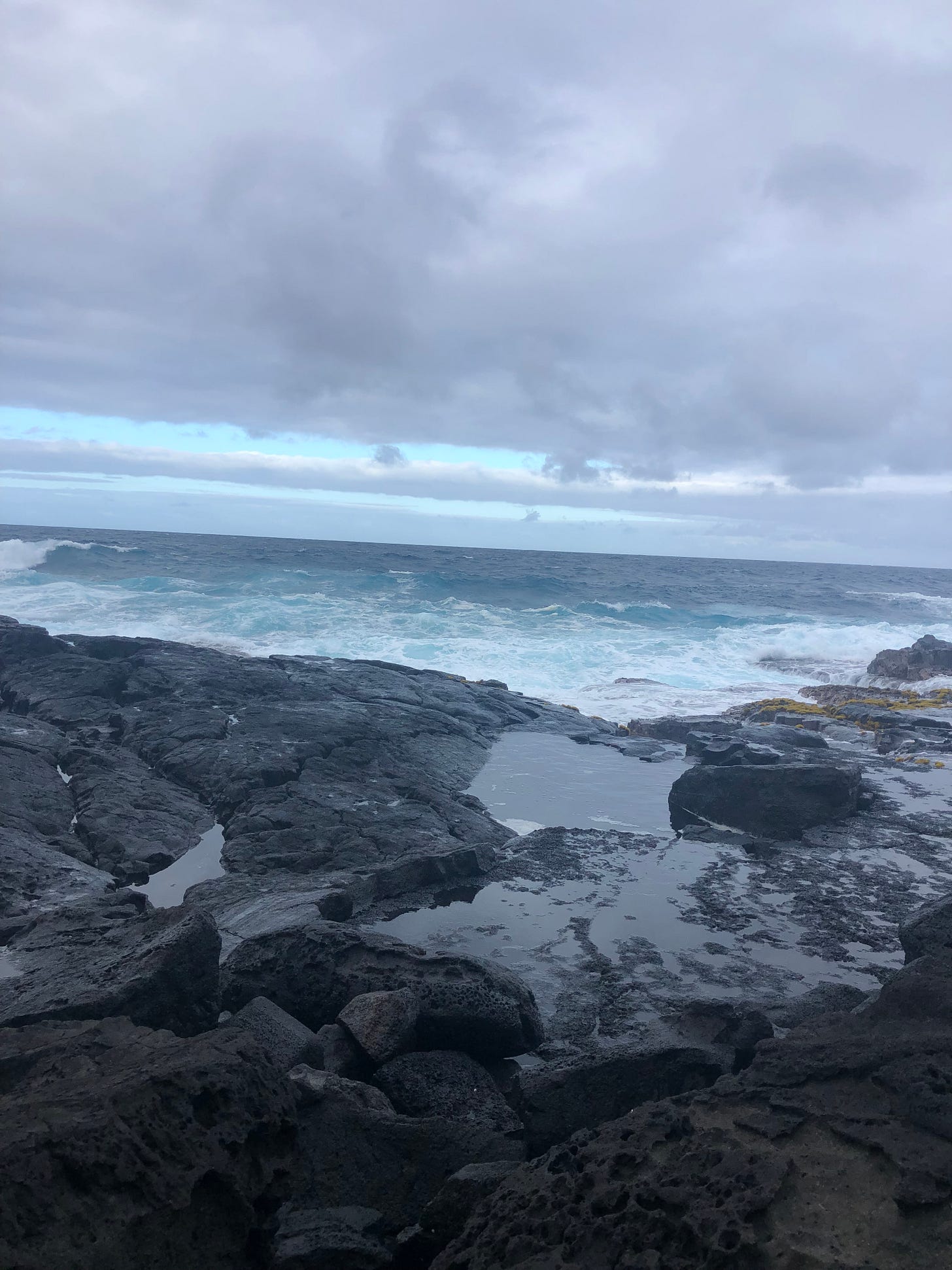I keep this in mind as I encounter people day to day. I see that I am about to walk past a father and his two small children. I have this thought that this is how I would want to raise my own-teaching them how to navigate difficult terrain, exploring, in Hawai’i. As I pass them, I push past my shyness and greet them. The little boy looks up and exclaims “HI!!!” With an adorable smile and much enthusiasm. It did something to my heart.